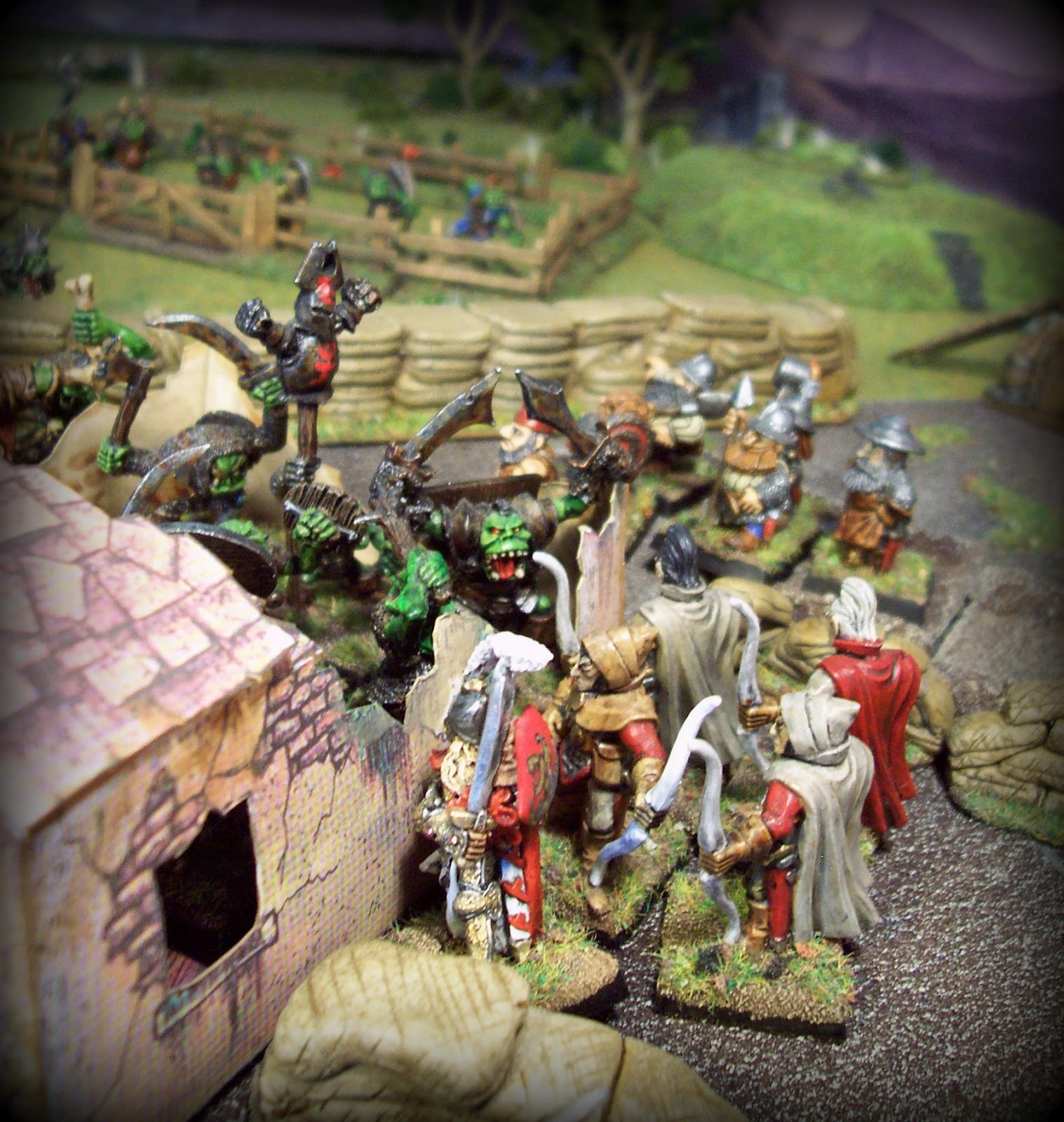 The situation was desperate. The compound was rapidly filling with Orcs as they poured in over the uncontested outer walls. The defenders found themselves beset on all sides, hemmed into their central redoubt by the screaming mob. The air was rent with the clamour of battle and the cries of the wounded. Over all this came the voice of the new Orc King,